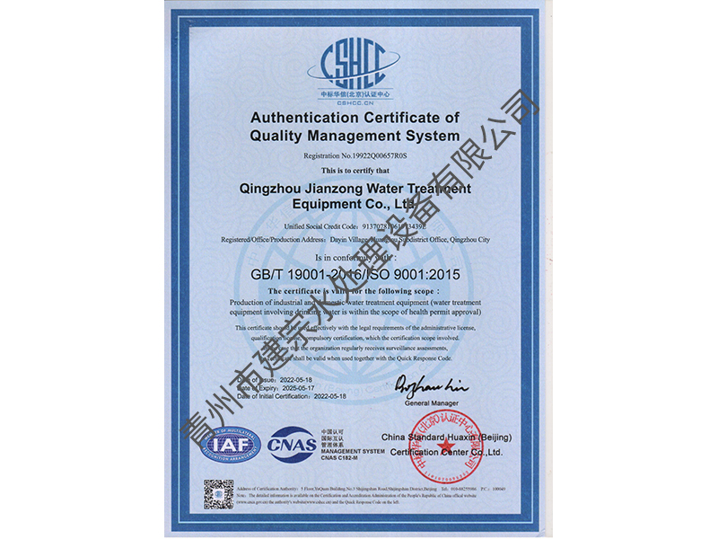 Welcome to Qingzhou Jianzong Water Treatment Equipment Co., Ltd.