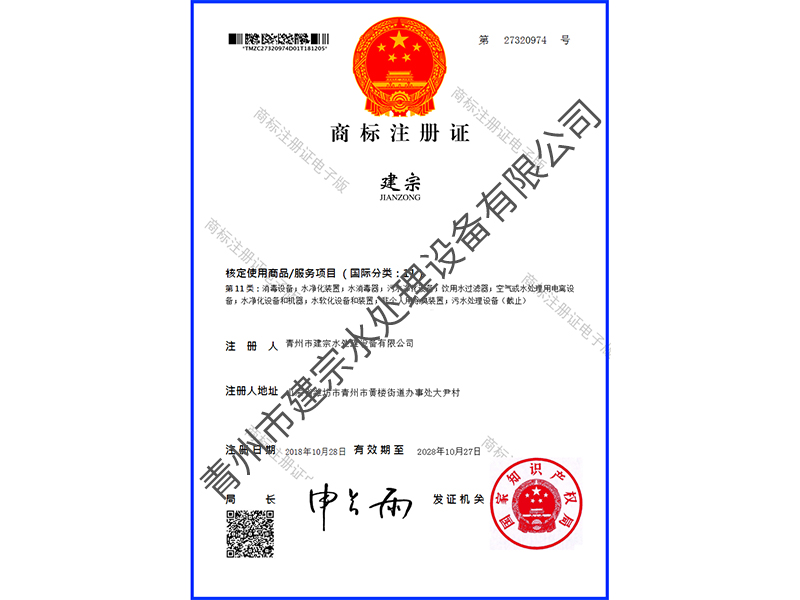 Qingzhou Jianzong Water Treatment Equipment Co., Ltd. specializes in the manufacture, sales and installation of water treatment equipment, filling equipment, hydraulic machinery, etc. Products are mainly engaged in pure water equipment, water softening equipment, reverse osmosis equipment, ultrafiltration equipment, filtration equipment, mineral water equipment, high pure water equipment, filling equipment, EDI and ion exchange equipment. The company is a high-tech enterprise integrating the development, manufacture and sales service.